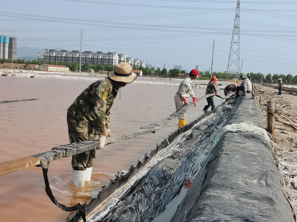 礦鹽生產(chǎn)班組提前謀劃原鹽集運(yùn)前的準(zhǔn)備工作。2022年秋扒鹽已經(jīng)順利落下帷幕,工人們利用收鹽后的空隙對(duì)鹽池板進(jìn)行修整、整理收放系統(tǒng)以及將扒鹽機(jī)械進(jìn)行保養(yǎng)入庫(kù)等等。同時(shí),修整運(yùn)鹽主干道,地基較軟處以鋼板鋪墊,確保運(yùn)鹽車(chē)輛安全通過(guò)。排查廩基周?chē)叩蛪壕€路,在作業(yè)的同時(shí)堅(jiān)守安全生產(chǎn)底線。等待天氣轉(zhuǎn)好,將立即進(jìn)行原鹽集運(yùn)。
