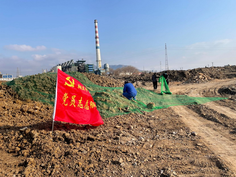 三是做好大型裸露地塊苫蓋。20日下午,西風(fēng)正勁,來(lái)自海州灣、翔立、美多利、資源公司、猴嘴辦、養(yǎng)殖辦、留守處、臨達(dá)、機(jī)關(guān)等9個(gè)黨支部的黨員突擊隊(duì)、志愿服務(wù)隊(duì)等,全員投入緊張的防塵苫蓋工作中。經(jīng)過(guò)半天搶工,100余畝祼土得到及時(shí)苫蓋。
