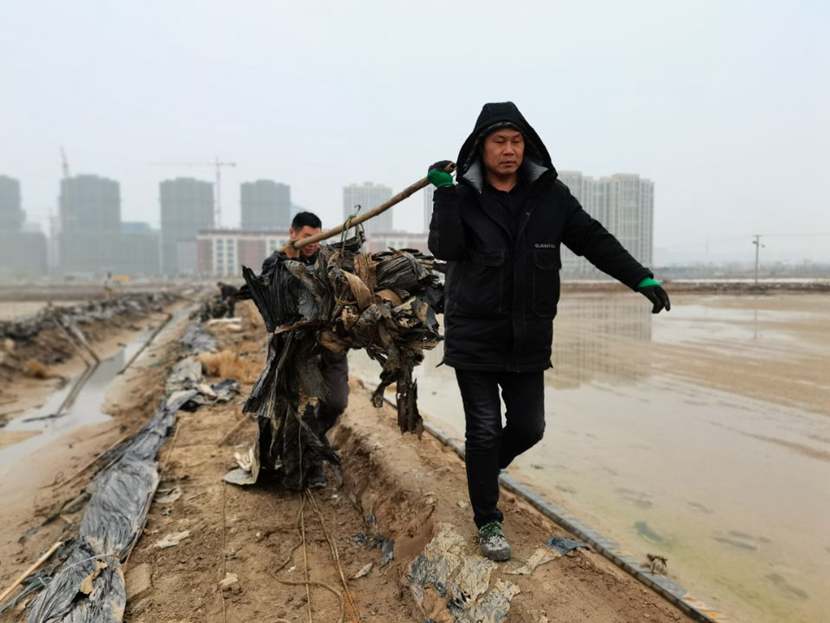 勞動現(xiàn)場,鮮紅的“黨員突擊隊”旗幟迎風(fēng)飄揚,凜冽的寒風(fēng)夾雜著細雨,絲毫不減大家的勞動熱情,個個汗流浹背、滿身泥漿,不怕臟不怕累,經(jīng)過3個小時的突擊勞動,共清理1200米、16車池埝垃圾。