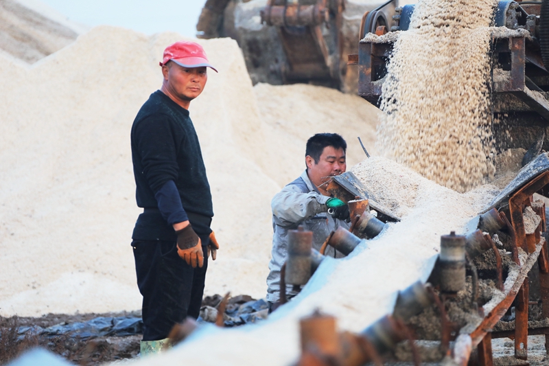 保證過(guò)河原鹽集運(yùn)。皮帶機(jī)如果缺乏合理的檢查和維護(hù)工作,容易引發(fā)斷帶、打滑、跑偏、撒鹽等現(xiàn)象。工程隊(duì)成員24小時(shí)待命,按照領(lǐng)導(dǎo)要求,積極參與海州灣公司扒鹽工作,皮帶機(jī)的維修保養(yǎng)以及搬運(yùn)工作,為扒鹽、運(yùn)鹽、銷售等工作保駕護(hù)航。