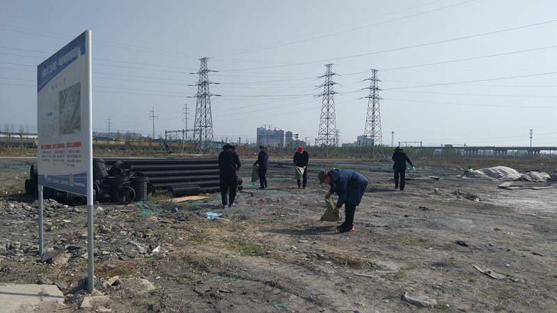 翔立分公司黨支部攜手海州灣公司黨支部對公司的車站小灘進行環(huán)境整治,為裸露在外的土地進行防塵網(wǎng)鋪設(shè)。