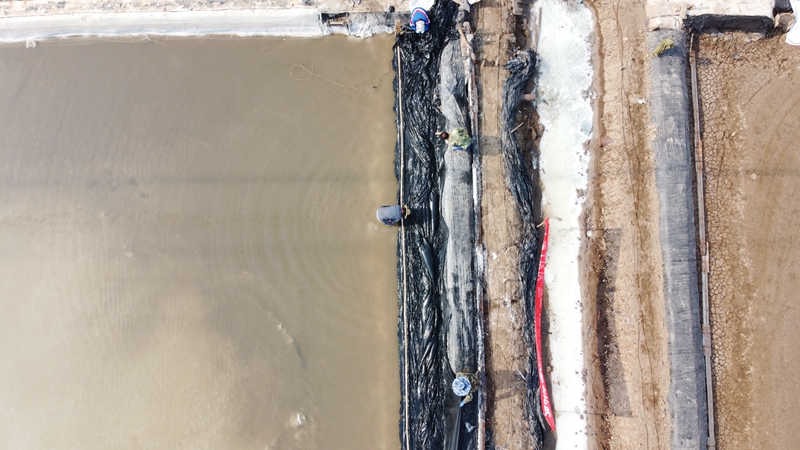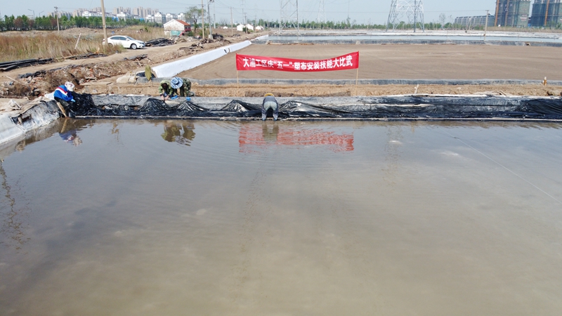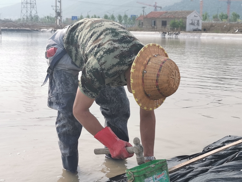 不到半天時間完成了數(shù)百米的塑布安裝