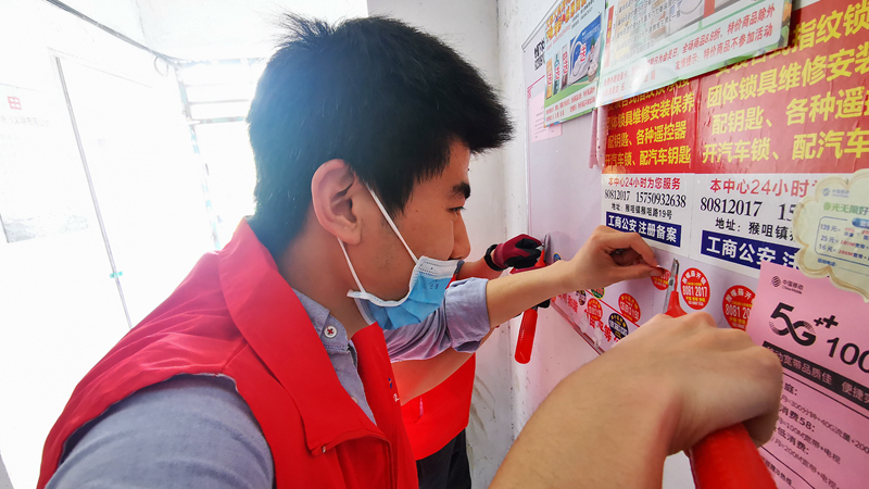 水淋、撕鏟、涂抹,志愿者們“奇招百出”對小區(qū)墻面、電線桿等處張貼、噴涂的小廣告進(jìn)行全面清理。35度的高溫下,汗流浹背的大伙收獲的不僅是小區(qū)“臉面”煥然一新后勞動的喜悅,還有結(jié)識志同道合的新朋友通力協(xié)作的“戰(zhàn)友情”。