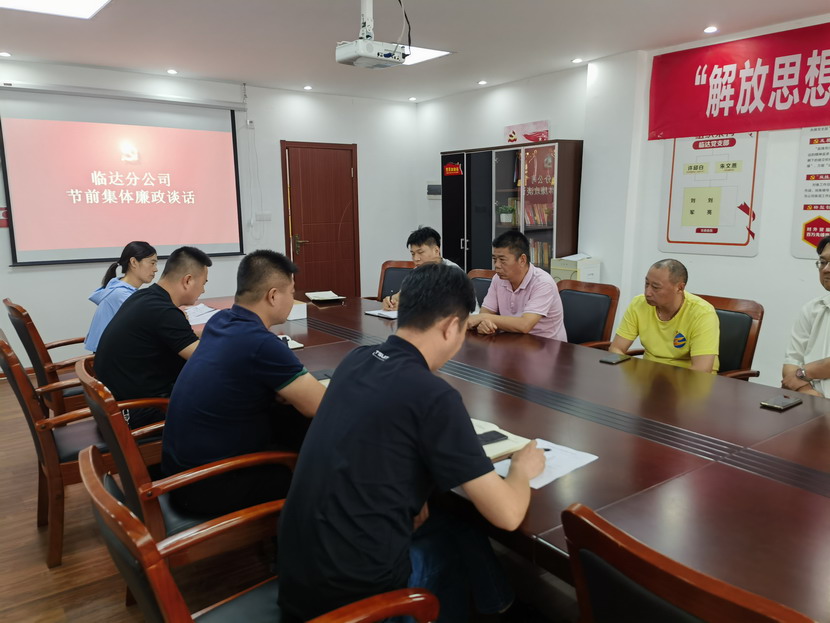 ? ? 中秋、國(guó)慶將至,為切實(shí)深化節(jié)日期間作風(fēng)建設(shè),進(jìn)一步強(qiáng)化廉潔自律意識(shí),筑牢防腐拒變防線。9月6日上午,臨達(dá)分公司開(kāi)展節(jié)前集體廉政談話(huà)。