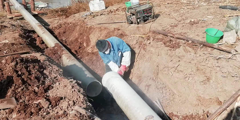 方案是拿出來了,但苛刻的現(xiàn)場環(huán)境、嚴(yán)峻的施工條件像冬季的陰霾再度籠罩在大家心頭!河對岸無交通橋梁人員無法直達(dá)對面,利用船只過河又面臨著河面結(jié)冰。以往這種距離的過河都是采用PE管(質(zhì)地柔軟彎曲性能優(yōu)越),但購買PE管道的成本太高。玻璃鋼管道本來就比較脆弱易碎,更何況是三節(jié)連接在一起長達(dá)36米的過河管道,這在鹽場管道施工史上還沒有先例。