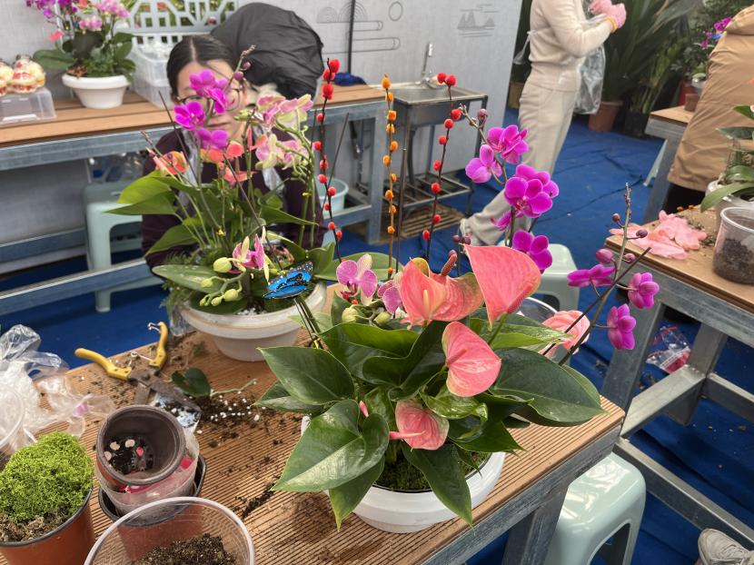 ? ? 我們的華茂花卉城精心為每個人準(zhǔn)備了插花素材,我們都折騰的不亦樂乎,大家又是墊土又是把花扶正又是擺造型又是壓實土,每一次都樂在其中,巧手創(chuàng)造出的一半是生活,一半是浪漫。雖然說沒有專業(yè)插花師插的那么好,但看到有生命力的插花,美極了,心情也會一下子舒暢!