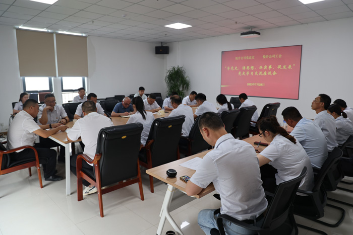 為慶祝中國共產(chǎn)黨成立102周年,鞏固拓展黨史學(xué)習(xí)教育,深入貫徹落實(shí)黨的二十大精神,不斷增強(qiáng)黨員初心使命意識。7月28日下午,悅升公司組織開展“學(xué)黨史、悟思想、辦實(shí)事、促發(fā)展”黨史學(xué)習(xí)交流座談會。悅升公司領(lǐng)導(dǎo)、各支部黨政工負(fù)責(zé)人及優(yōu)秀黨員代表參加了本次活動。