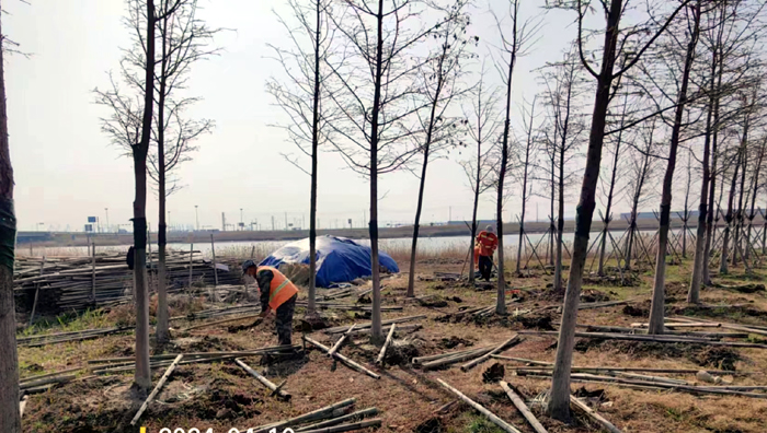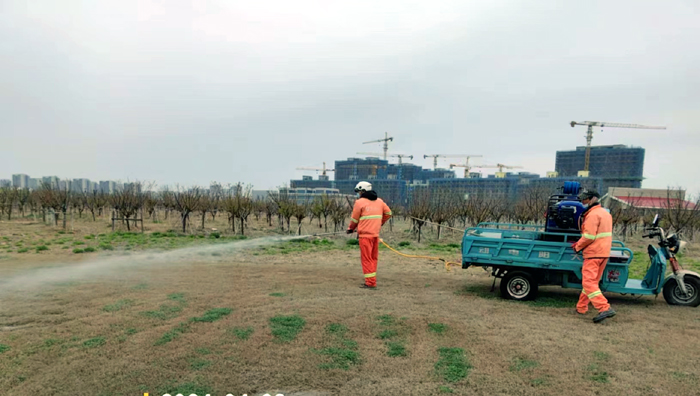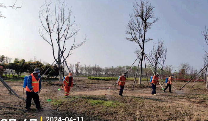 積極澆灌返青水。當(dāng)前,地溫回升快,苗木易萌芽,該班組采用“人工+機(jī)械”相結(jié)合的方式,全面啟動返青水集中澆灌工作,重點(diǎn)對園區(qū)喬木、果木、草坪等進(jìn)行全面灌溉,促進(jìn)苗木、草坪返青發(fā)芽。按照分種類、合理澆灌的原則,采取集中澆灌的方式最大限度減緩晝夜溫差對綠化植物的影響,入春后共澆水100余次,對落羽杉圓動力灌根2000棵,對大樹澆水1500棵,綠化澆水約30000平方米。