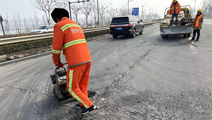 市政維護“有龍威”。大年初二,市政值班人員在日常巡視中發(fā)現(xiàn)港前大道至蘇海路段出現(xiàn)3處道路坑塘,造成極大的道路交通安全隱患。值守工作人員第一時間帶好瀝青冷補料,切割機和平板振動夯等工具第一時間到崗到位。擺好安全警示錐、路面切割、補料、修復(fù)……大家齊動手,配合和諧,連續(xù)作戰(zhàn)2個多小時,高質(zhì)高效將道路坑塘修補到位,確保春節(jié)期間道路交通安全。