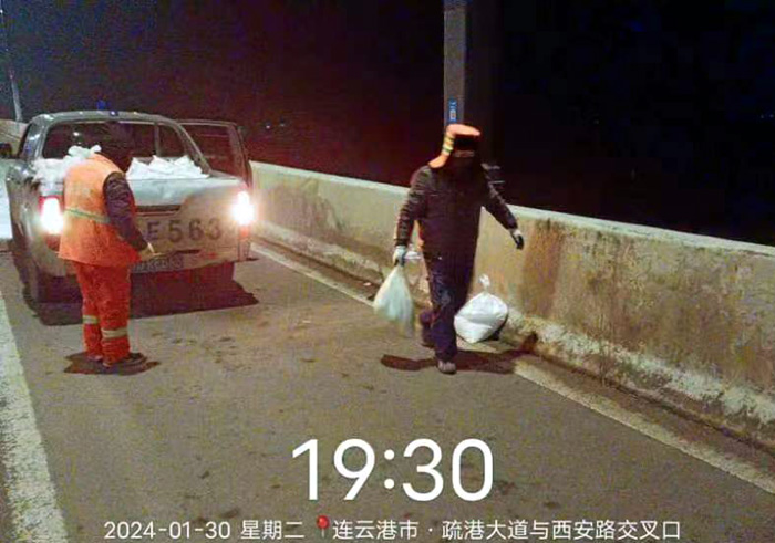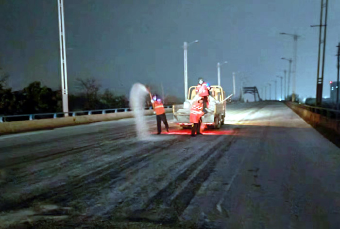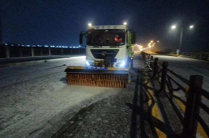 截止早上7點,悅升公司共出動機械設備10臺、人員260余人,對橋梁和重點結冰地段使用融雪劑150余噸,及時消除路面冰凍隱患100余處。