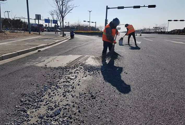 燈塔路路口,巡查人員發(fā)現(xiàn)大面積車輛拋灑物,生產(chǎn)骨干張學(xué)軍、徐習(xí)東、陸永柱接到公司應(yīng)急處理電話第一時間趕赴現(xiàn)場,盡管天氣寒冷,但是大家干的熱火朝天,共清理泥塊30多處,長達(dá)800多米長;轉(zhuǎn)運石子、石塊50多車,他們再次用行動彰顯黨員示范風(fēng)采。