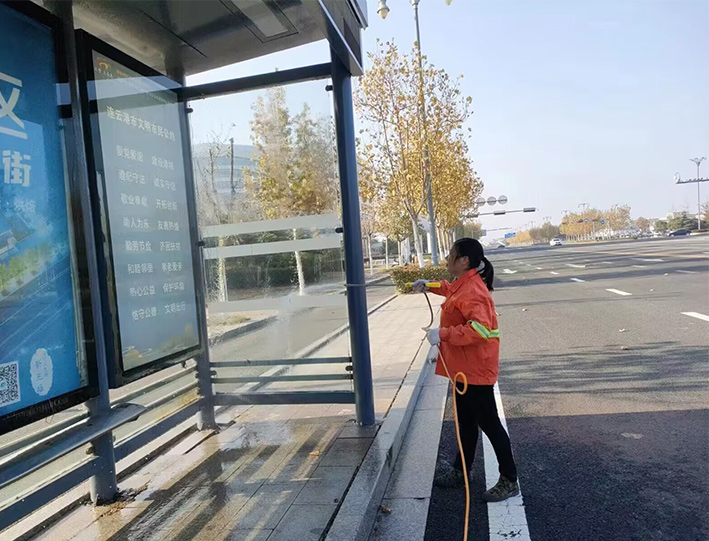 該分公司百余名一線保潔人員,無懼徐圩初冬低溫天氣,道路兩側(cè),公交站臺,三人一組,兩人一對在班長帶動下,揮動手中大掃把,上下擺動拖把,人工清掃輔道落葉2000多米長,清洗站臺30多個,徒手擦洗座椅60多個,清倒果皮箱200多個;突擊轉(zhuǎn)運園區(qū)施工垃圾300袋,有力保障途經(jīng)道路環(huán)境整潔靚麗;大型車輛整裝待發(fā),持續(xù)三天加班加點,7時許準(zhǔn)時加滿車廂用水,安全有序到達(dá)指定路段,20臺大中型清掃沖洗車輛作業(yè)臺班達(dá)4個以上,為成功完成此次大保障有力彰顯機械強大功能。