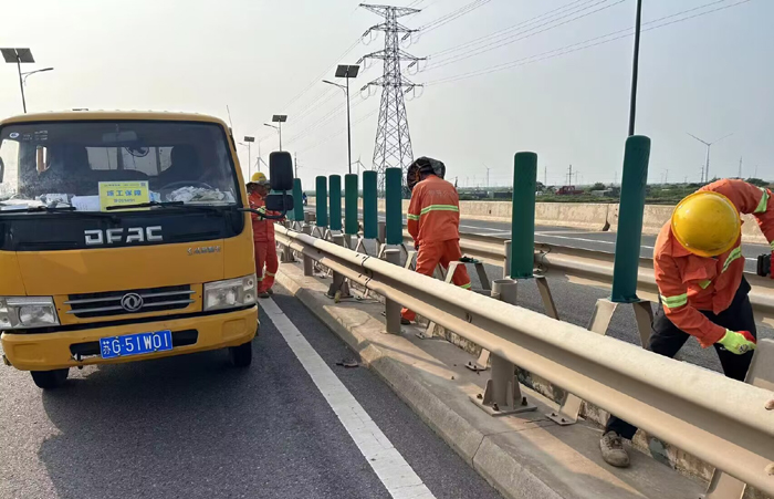 9月11日下午,市政分公司開展橋梁中分帶缺損防眩板專項(xiàng)維修行動(dòng),工作人員加班加點(diǎn),攜手奮戰(zhàn),完成維修任務(wù),排除安全隱患,保障過往車輛行駛安全。